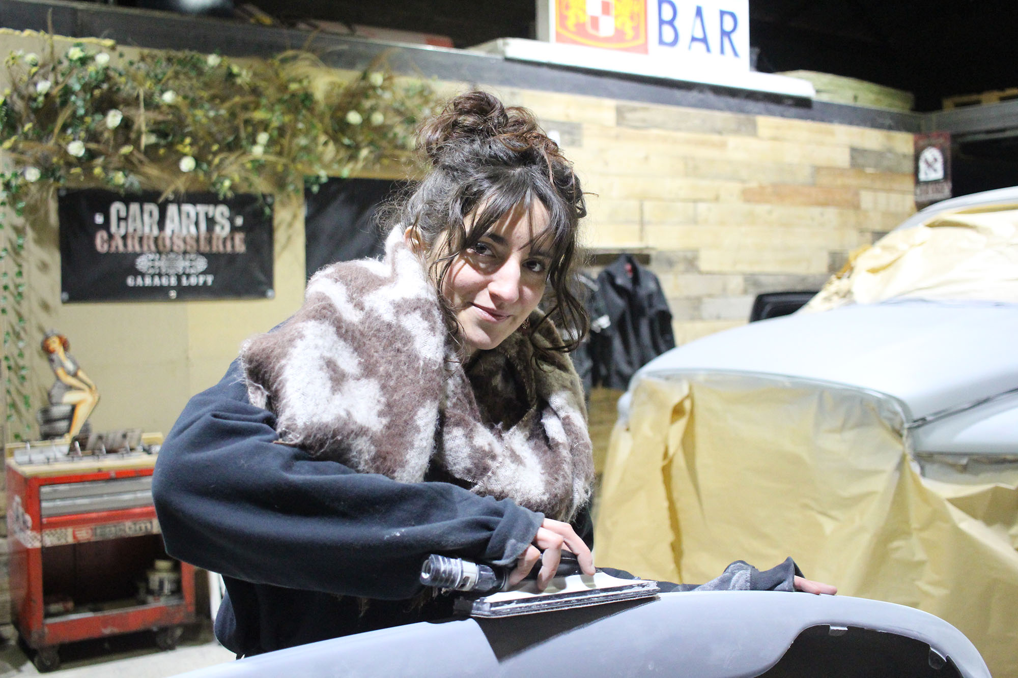 La maîtresse des lieux est une jeune femme de 25 ans, Laura Chaminade, cheveux longs noirs et œil de biche. Sans gros biceps et tout en finesse, cette passionnée de voiture s’est bricolé tous les meubles de son atelier. Malgré sa silhouette frêle, elle n’a pas peur de s’attaquer à la remise en état d’un pick-up. Ce qui l’anime, c’est sa passion pour la customisation des voitures, l’art de les personnaliser, d’en révéler le potentiel. On ne parle pas ici de tuning, qui est une modification sans cohérence, juste destinée à attirer l’attention, quand la customisation répond à un projet cohérent, une mise en beauté du véhicule qui s’adapte au modèle en même temps qu’aux désirs du client. Cette mode, très répandue au États-Unis, est encore confidentielle en France, où la voiture a un rôle majoritairement utilitaire et où les véhicules se déclinent le plus souvent en noir et blanc.