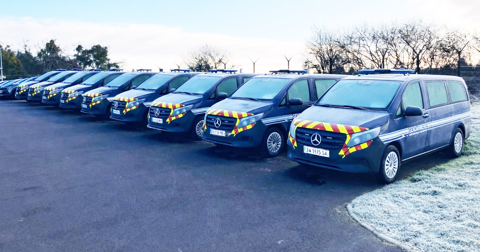 Le constructeur allemand rappelle qu'e n 2008, "pas moins de 268 Vito 116 CDI 4 x 4 Tourer avaient été livrés à la Gendarmerie", et "certains roulent encore comme à Chamonix." Rebelote donc , dans les Pyrénées (côté Occitanie), via un appel d'offres de l' Union des Groupements d'Achats Public (Ugap) avec 10 modèles Vito 1,9CDi peints en « bleu acier », une teinte standard du catalogue Mercedes-Benz, très proche du fameux « bleu gendarmerie ». Bien sûr il s'agit de modèles Tourer quatre roues motrices avec finition Pro, système multimédia Mbux et climatiseur Tempmatic à régulation semi-automtique. Cette version comprend les sièges avant Confort à soutien lombaire. Côté moteur et boîte ces dix nouveaux véhicules 8 places, chauffeur compris, sont dotés de la boite automatique 9G Tronic et un quatre cylindres de 190 ch et 440 Nm de couple. Mercedes explique que "C’est précisément sur ce critère de puissance que la Gendarmerie a choisi le Vito, dans le cadre d’un appel d’offres de l' Ugap